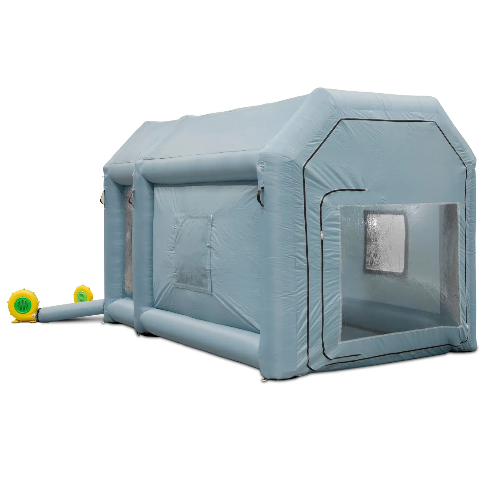 A stabilitásról a keret gondoskodik, amit a 750 W-os erős fúvókával fújhat fel. A külső falakhoz használt kiváló minőségű, PU-bevonatú oxfordi szövet ugyanolyan strapabíró. A mobil festőkabin rendkívül tartós, szennyeződéstaszító, így ideális külső burkolatként. A festőkabin felfújva 4 x 2,5 x 2,5 m méreteivel elegendő helyet biztosít nagyobb tárgyak, például autók vagy motorok, számára. A 370 W-os erős ventilátor gondoskodik a kellemes légmozgásról a belső térben.