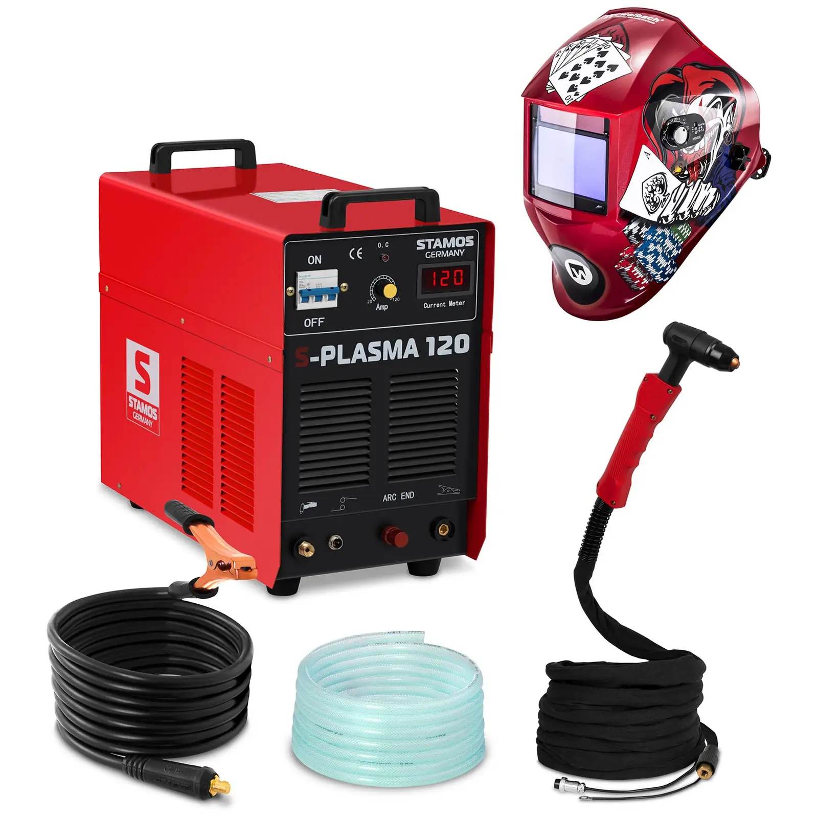 Hegesztő készlet Plazma vágó - 120 A - 400 V - Pilot gyújtás + Hegesztő sisak – Pokerface – PROFESSIONAL SERIES