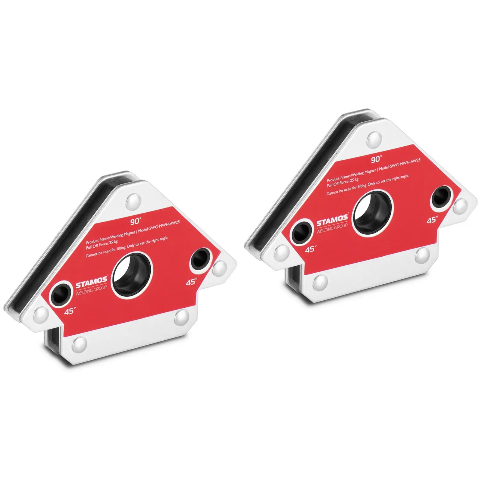 A hegesztőmágnes nyíl alakú kialakítása lehetővé teszi a multifunkcionális alkalmazást különböző pozíciókban. Helyezze a hegesztőmágneseket 45, 90 és 135°-os pozícióba. A mágneses szögbeállító rugalmas megoldást kínál a munkadarabok optimális elhelyezésére, az Ön elképzeléseinek megfelelően.